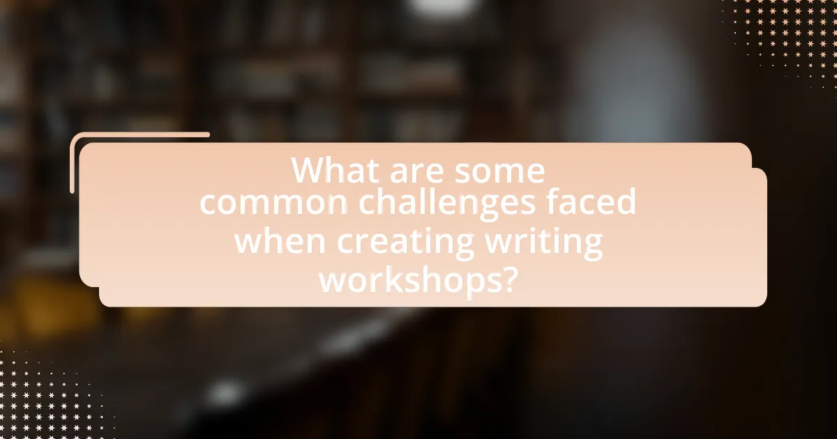 Common challenges faced when creating writing workshops include participant engagement, varying skill levels, and logistical issues. Engaging participants can be difficult as individuals may have different motivations and expectations, leading to a lack of interaction. Additionally, varying skill levels among participants can create disparities in learning, making it challenging for facilitators to address everyone’s needs effectively. Logistical issues, such as scheduling conflicts and resource availability, can also hinder the successful execution of workshops. These challenges are frequently reported in educational literature, highlighting the complexities involved in designing effective writing workshops.