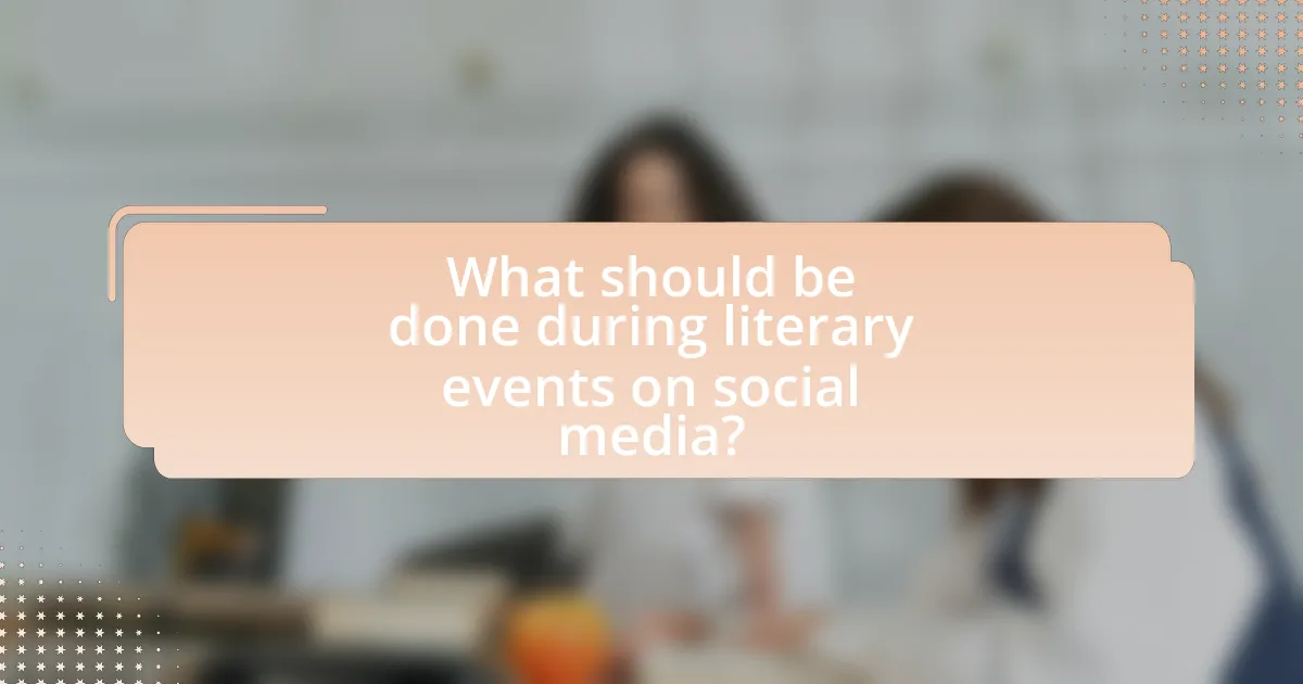 During literary events on social media, live updates should be shared to engage the audience in real-time. This includes posting quotes from speakers, sharing images or videos of the event, and encouraging audience interaction through polls or questions. Engaging content can increase visibility and participation, as studies show that live-tweeting events can boost audience engagement by up to 30%. Additionally, using relevant hashtags can help in reaching a broader audience and creating a sense of community among participants.