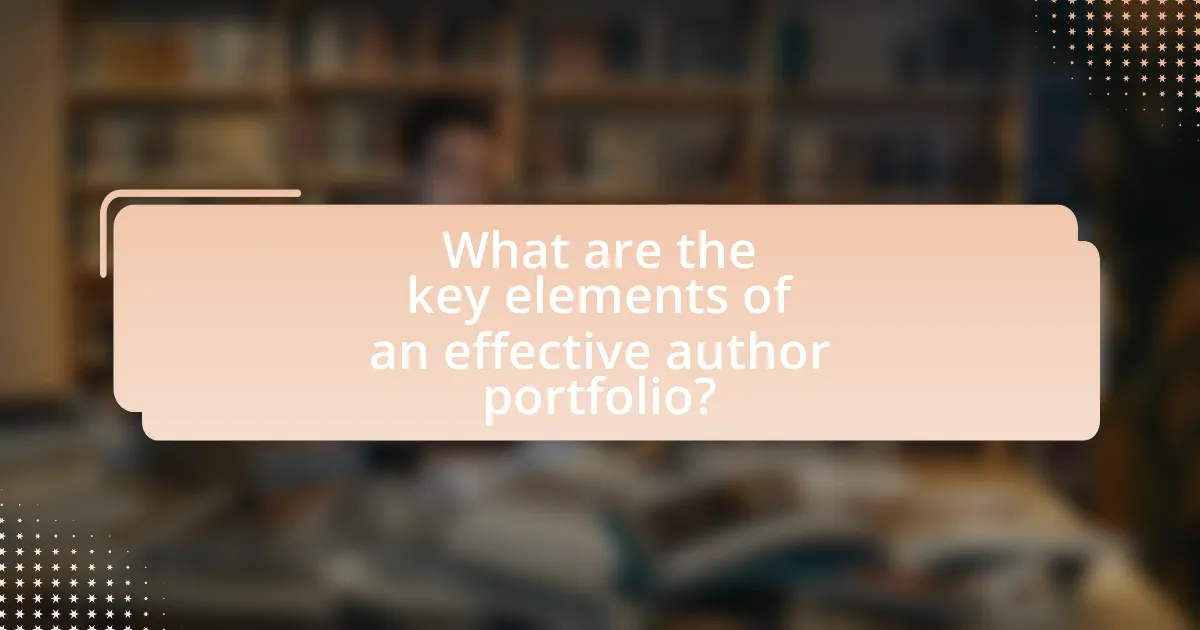 An effective author portfolio includes a clear presentation of the author’s best works, a professional biography, and contact information. The selection of works should showcase a range of writing styles and genres, demonstrating versatility and skill. A professional biography provides context about the author’s background, experience, and writing journey, which helps establish credibility. Contact information ensures that potential clients or publishers can easily reach the author for opportunities. These elements collectively create a comprehensive and appealing portfolio that effectively represents the author’s capabilities and professionalism.